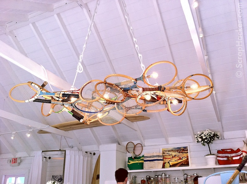 Мебель из мячиков мы уже видели, а вот какие миленькие получились столики из ракеток - чем не арт?:)