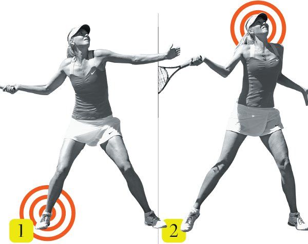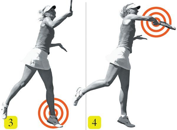 Sharapova’s full shoulder rotation leaves her facing the net with her weight moving forward. From this position, she can easily land, do a split step and be ready for the next shot—if this one isn’t an outright winner.