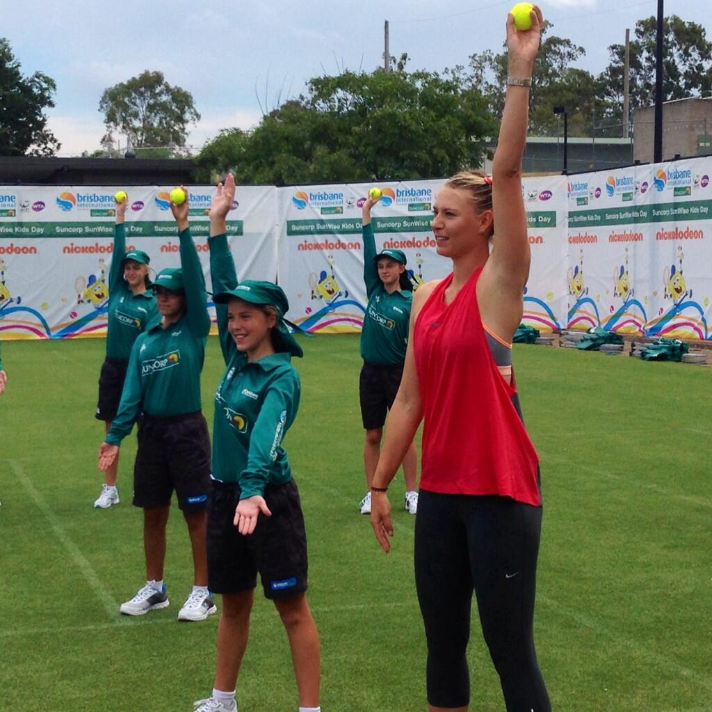 Maria Sharapova getting a lesson in how to be a ball boy.