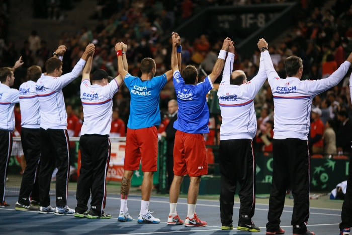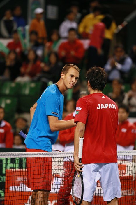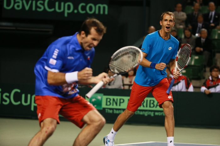 Радек Штепанек и Лукаш Росол расслабляются после победы над сборной Японии