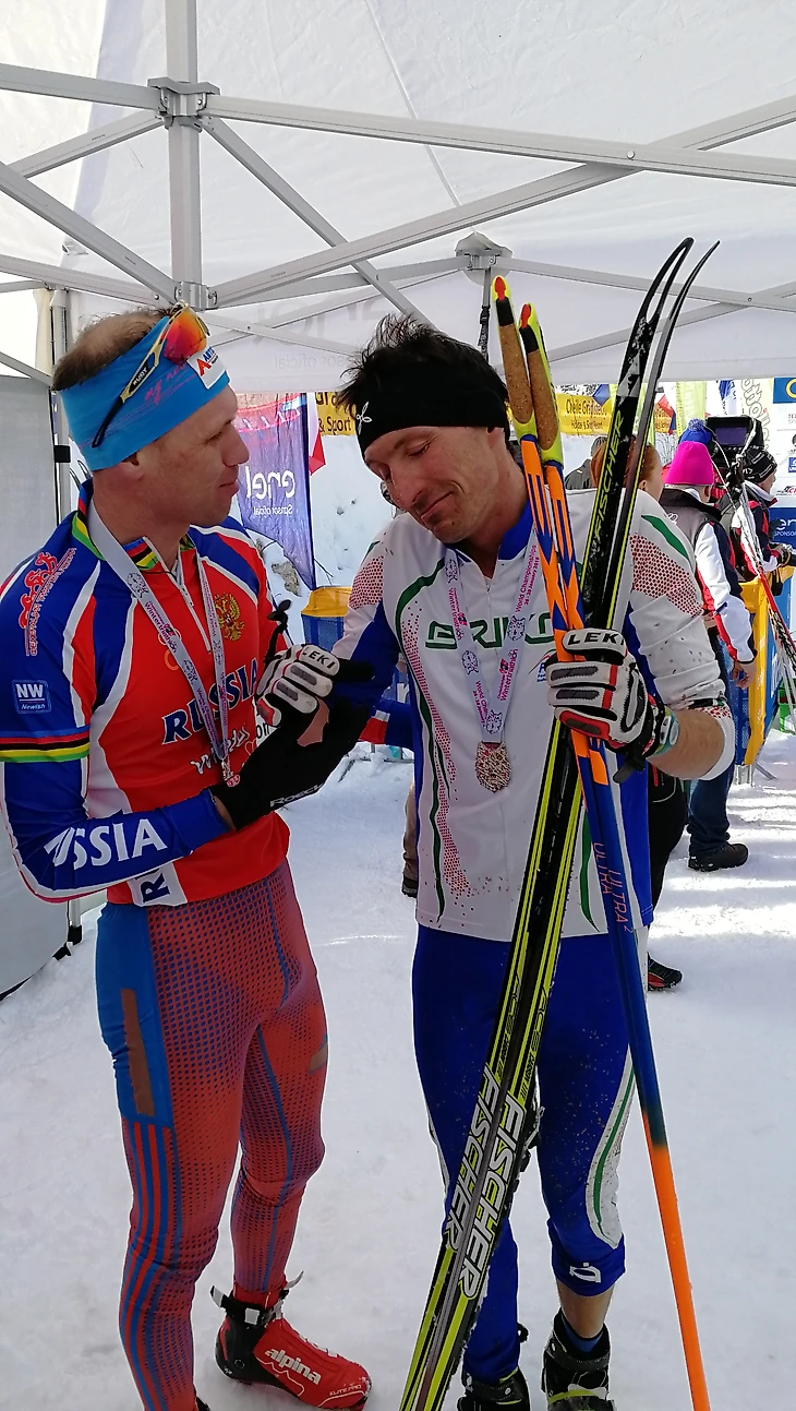 Андреев приветствует давнего соперника, итальянца Даниэле Антониоли, который финишировал в этот раз на 5 месте