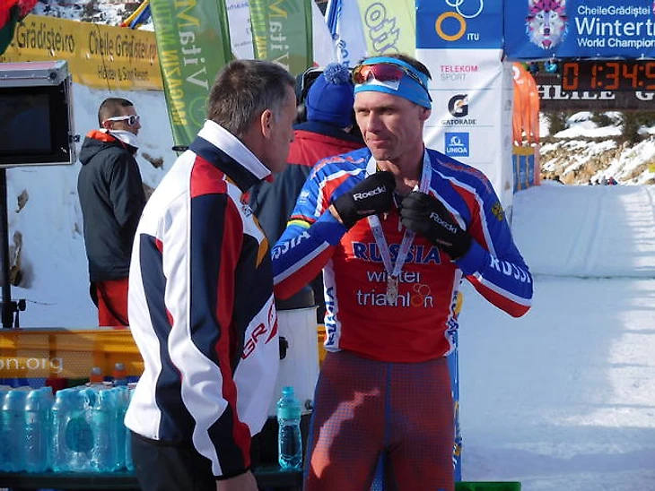 Только здесь тренеры подбадривали проносящихся мимо спортсменов…из других стран. Да, сам был свидетелем, как итальянцы кричали своё Dai, daiiiii и нашим, и румынам. Чехи и словаки выкрикивали что-то ободряющее на своих языках. Особенно старались мотивировать тех, кто уступает в классе лидерам, и сильно отставал. В мире, где спорт превратился в циничную борьбу за победу любой ценой, такие проявления доброты в буквальном смысле греют душу. «Ну а как иначе-то, мы тут все как большая семья», – сказал наш тренер Андрей Гудалов, когда мы с ним пробирались по сугробам в направлении финишной прямой. В руках у него был российский флаг, прикрепленный к лыжной палке, который спустя несколько минут был вручен будущему чемпиону. Зимний триатлон редко транслируют по ТВ, поэтому все должно быть в лучшем виде.