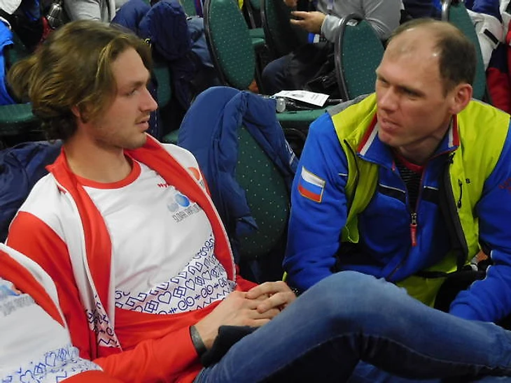 Павел Андреев (слева), и его знакомый из сборной Словакии. Общались на русском