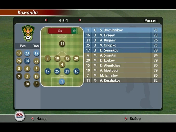 К сожалению, в данной версии игры нет РФПЛ и, следовательно, нет российских команд. Зато есть сборная России
