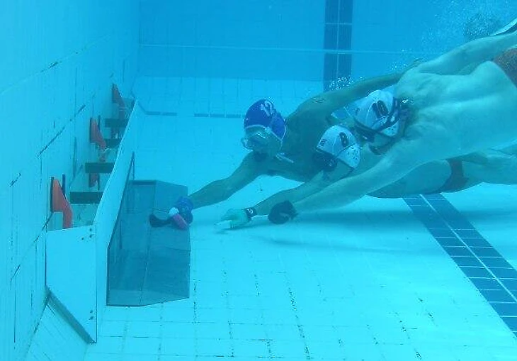 Что касается судей, то их двое. Один находится на поверхности, а второй-под водой, а чтобы не отвлекаться от матча, он находится в полной дайверской экипировке. Играют обычно 2 периода по 15 минут каждый(у любителей 10 минут), также предусмотрен перерыв, который длится около 3 минут, у каждой из команд есть право на один тайм-аут, который они могут запросить в любой момент матча.