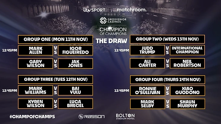 С 11 по 17 ноября в английском Болтоне пройдёт пригласительный снукерный турнир Champion of Champions, на котором принимают участие победители турниров за предыдущие 12 месяцев.
