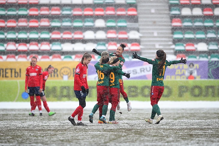 На «Сапсан Арену» вернулась Суперлига! 11 марта здесь состоялся матч между ЖФК «Локомотив» и ЖФК «Енисей». Москва встретила нефутольной погодой: метель хозяйничала на поле и на трибунах. Но со стартовым свистком Ксении Горячевой захозяничали железнодорожники. На трибунах болельщики пытались перекричать ветер, а на поле футболистки «Локомотива» побежали в атаку. Они и забили первый гол в матче. На четвёртой минуте нигерийский форвард Чиноньйерем Маклинс откликнулась на передачу Юе Юнь Люй и мощно пробила в ближний угол. Без шансов для вратаря красноярской команды. Второй гол был забит уже в конце первого тайма. Ангелина Цирульникова, голкипер «Енисея» справилась с ударом Маклинс, но мяч отлетел прямо на ногу Душ Сантуш, которая не промахнулась. 2-0 – итоговый счёт первого тайма и, как оказалось, всей игры.