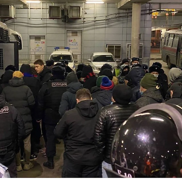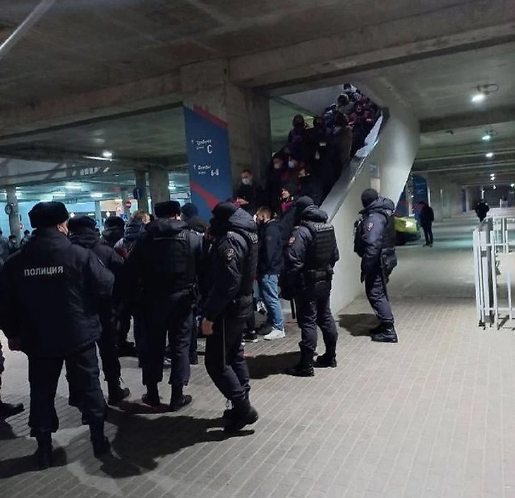 Времени, которое фанаты провели на трибуне, было достаточно, чтобы стянуть сюда небольшую армию полиции и ОМОНА. Начались задержания. Группы замёрзших зрителей провожали в автозаки.