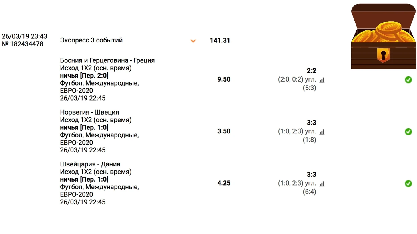Именно этим аспектом система экспрессов и привлекает, потому что хочется победить у того, у кого победить невозможно (речь, конечно, не про экспресс из трёх матчей с коэфами 1.08 или около того). Хочу ещё раз отметить, что я ни в коем случае никого не призываю играть на ставках, особенно если вы этого ещё никогда не делали.