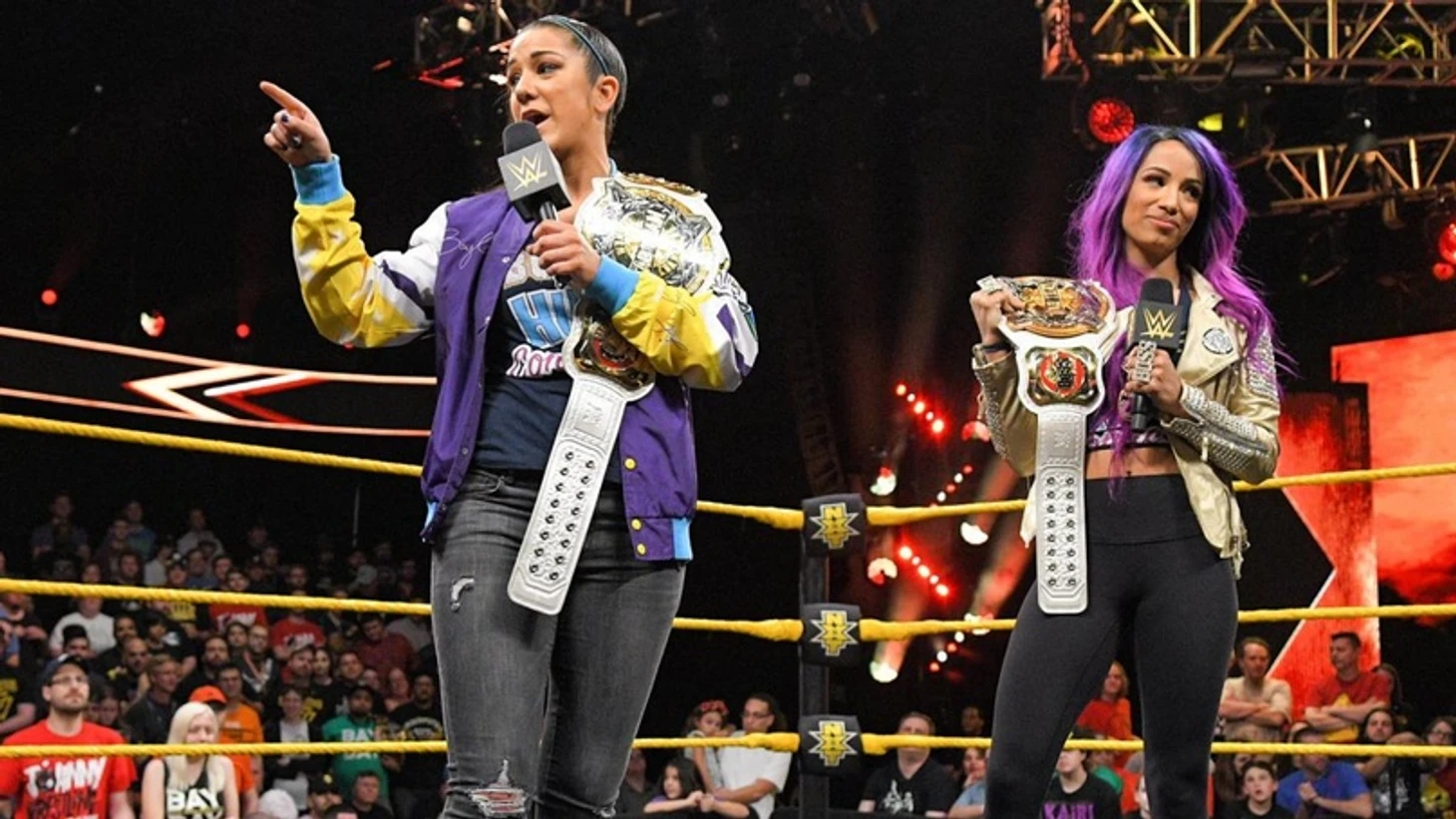 Встретили женских командных чемпионок достаточно тепло, что неудивительно, ведь именно здесь они «запустили» женскую революцию, подарив нам как минимум 2 матча, которые стали настоящей классикой женского рестлинга, причем без привязки к промоушену. Послушав громогласное «Welcome back!», Саша спросила «Вы скучали по нам?», и получив утвердительный ответ, она обратила внимание на титулы, заметив, что путь к этим трофеям был положен именно на NXT. После кричалок «NXT!» и «You Deserve it!», Бэйли решила нам напомнить, что последний раз мы видели их на одном ринге в NXT на TakeOver: Respect в первом в истории Iron Woman матче. Поэтому им было важно появиться здесь и разделить радость от завоевания чемпионств с NXT. А, так как их путь в качестве чемпионок только начинается, и они хотят сделать эти титулы достойным трофеем, они собираются защищать их на RAW, SmackDown… и здесь, в NXT. Так что, будьте готовы к тому, что в следующий раз они появятся в этом ринге, чтобы защитить чемпионство. «And you can bank on that».
