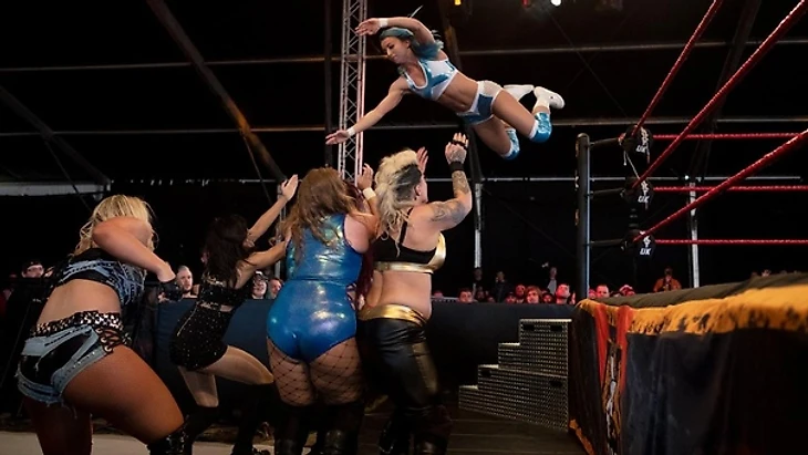 Начали матч Бруксайд и Рэй, но вторая сразу же передала тэг Джинни, на встречу которой из вражеского угла вышла Шторм. Джинни попыталась завладеть контролем, но Тони отбилась киками и дропкиком. Тэги Нивен и Гэберт, обмен ударами, и Джэззи провела шоулдер тэкл. Право ведения боя вернулось Джинни, и та принялась забивать шотландку, но та ответила слэмом, после чего передала тэг Бруксайд, и последовала командная работа с удержанием до 2. Сая провела харриканрану, но Ли Рэй получила тэг и шарахнула свой gourd buster, за которым прошел элбоу дроп и удержание до 2. В матч отправилась Гэберт, и хилы завладели контролем, но Бруксайд сумела отбиться с помощью торнадо DDT, и мы увидели смену составов на Джинни и Тони соответственно. Чемпионка тут же провела немецкий суплекс и клоузлайн до 2, и произошла большая драка, в ходе которой Рэй и Гэберт были отправлены за пределы ринга, получив суисайд дайв от Шторм. Нивен же добавила кэннонболл с апрона, а Сая зашла на хай кроссбади за пределы ринга. В четырехугольнике Джинни получила shinning wizard от Тони, но только до 2, так как Джэззи разбила удержание. Ей тут же досталось от Нивен, которая, в свою очередь, получила суперкик от Ли Рэй. Тони провела хэдбатт Джинни, в итоге тэг достался Бруксайд, но та получила от Гэберт, а Джинни провела ей фэйсбастер, принеся своей команде победу.