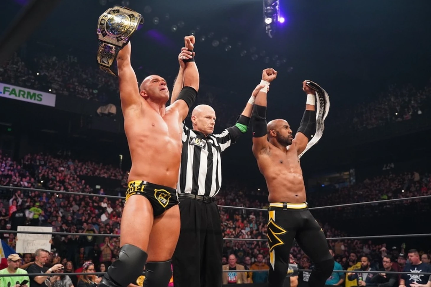 SCU (Фрэнки Казариан и Скорпио Скай) (ч) против Private Party (Айзайя Кэссиди и Марк Куин) против Lucha Brothers (Рей Феникс и Пентагон-младший) — матч за командное чемпионство мира AEW.