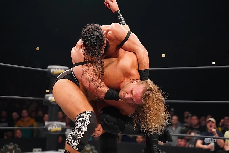 Я не перестану поражаться тому, насколько эти девушки технически хороши. Этот матч был построен именно на ин-ринг работе и на классическом бэкграунде «ученик против учителя», и справились они отлично, но у меня почему-то складывается ощущение от женских матчей в AEW, что им как будто что-то не хватает. То ли публика не достаточно заряжена, ибо не все хорошо знают Рихо и Сакуру, то ли джоши пуро-ресу как-то немного выбивается из общего вайба таких вот шоу. Не могу понять, потому что, вроде бы, и придраться не к чему совершенно, а вроде бы, как будто чего-то матчу не достает.