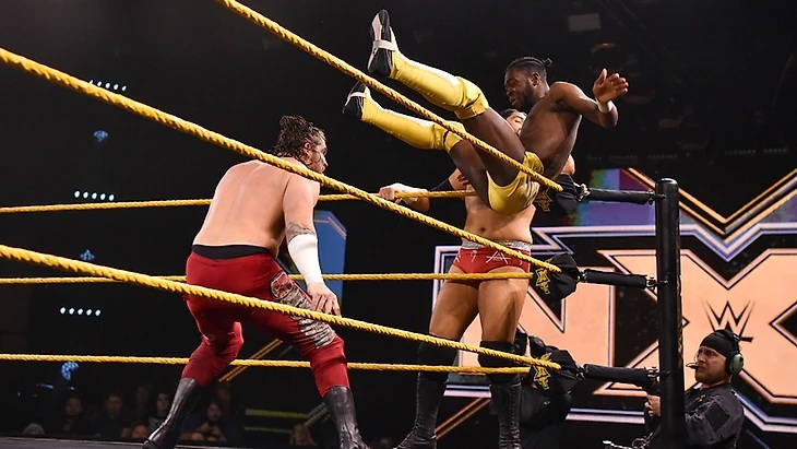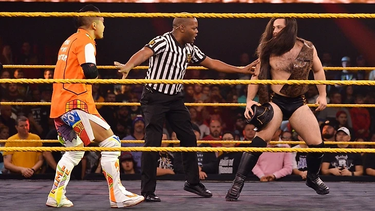 — В небольшом промо нам показали Кассиус Оно. Он заявил, что теперь не просто мастер нокаутов, но рестлинг-гений. И сегодня, как лучший исполнитель NXT UK, собирается показать нам небольшое превью того, что будет на WWE World Collide (напомню, что шоу будет проходить в рамках противостояния NXT и NXT UK).