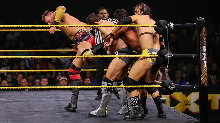 Матч начался с того, что фейсы быстро захватили инициативу благодаря Киту Ли. Тот швырнул Стронга, который вышел от Эры, в угол ринга и каждый поочереди принялся избивать Родерика. Когда на ринг вышел Дайджакович, то североамериканский чемпион смог передать таг О'Райли. Тот попытался зафиксировать гильотину, но лишь получил Release Suplex от Доминик, затем серию атак в углу, backbreaker и сплэш от второго каната. Далее Родерик смог забрать таг у своего партнёра, но сперва этому не сильно помогло Эре, так как гигант поймал на руки Кайла и буквально им вырубил и Стронга и Коула. Доминик продолжал ещё некоторое время доминировать над Эрой, успешно противостоя даже нескольким её членам. Однако, когда он провёл чоукслэм Стронгу, одновременно скинув со спину О'Райли, его атаковал Адам. С этого момента ненадолго Эра смогла доминировать над Домиником. Тот попытался передать таг и лишь силы всех трёх членов группировки хватило, чтобы оттащить его в свой угол. Но это было оттягиванием неизбежного, ведь здоровяк смог передать таг Чампе, который принялся разносить всех оппонентов клоузлайнами, О'Райли и Коул получили удары коленями, а Стронг – DDT со второго каната. Кайл пытался отбиться, но в результате получил Project Ciampa. Далее была попытка Fairy Tales Ending, но О'Райли смог среверсировать, а Стронг незаметно забрать таг и тут же Эра проводит свой командный финишер. Удержание разбивает Дайджакович, которого тут же устраняют. Родди пытается провести End of Heartache, но Томмасо реверсирует, получает Gut Buster и сам проводит дропкик. Оба передают таги и на ринг выходят Кит Ли и Адам Коул. Довольно скоро Коул оказывается за рингом вместе со всей Эрой. Ли берёт разбег для прыжка, но Коул успевает отбежать и здоровяк проводит Double Shoulder Block Стронгу и О'Райли, сам при этом получив суперкик, а затем Стронг, Коул и Ли получили Springboard Totnillo от Дайджаковича. В это же время на другой тёрнбакл забрался О'Райли. На него напал Доминик, Коул попытался помочь своего другу с ринга, но его отогнал рефери, который сам попытался согнать с тёрнбакла Кайла и Доминика. И в этот момент появляется Финн Балор, который проводит shotgun dropkick Адаму и тот своим телом вырубает рефери, а О'Райли и Дайджакович падают с тёрнбакла. Чампа получает 1916 и Балор собирается проводить ещё одну атаку Коулу, но появляется Кит Ли, который проводит Spirit Bomb Принцу. Панамский Плэйбой пользуется отвлечением оппонента и проводит суперкик и разгоняется от каната для Last Shot, но Ли ловит лидера Неоспоримой Эры на плечи и проводит Ground Zero и удерживает чемпиона NXT.
