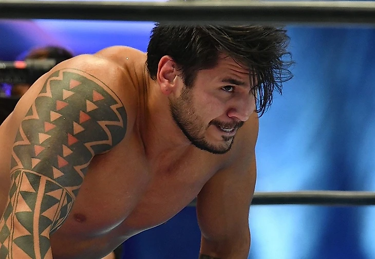 Уилл Оспрей (ч) против Хирому Такахаши — матч за чемпионство IWGP в полутяжелом весе.