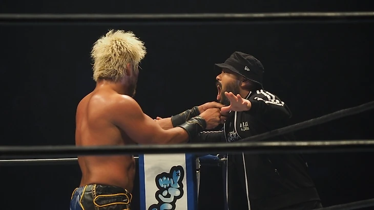 Михо Абе сопровождала Таичи, а как же еще? Начали матч Окада и Таичи, причем второй улучил момент для кика в голову, после чего все четверо участников боя отправились за пределы ринга. Естественно, Suzuki-Gun захватили контроль тут, и «Святой Император» побил Казучику стулом, придушил кабелем, так что, когда действо вернулось в ринг, Таичи и Сэйбр уже полностью контролировали ход поединка. В какой-то момент «Рэйнмэйкер» отбился флэпджеком от ZSJ, передав «горячий» тэг Оспрею. Уилл залетел в ринг спрингборд предплечьем Заку, провел харриканрану Таичи и добавил хэндспринг кик Сэйбру до 2. Достаточно быстро чемпион RevPro адаптировался и стал реверсировать атаки соперника болевыми, пару раз даже поймал Оспрея в тот самый Cobra Twist, но Уилл дотягивался до канатов, реверсировал, и наконец перевел гильотину в пауэрбомбу. Тэг Окаде, тэг Таичи, и Казучика принялся уничтожать представителя Suzuki-Gun, пока не нарвался на клоузлайны и кики. Ответ нашелся быстро — Tombstone Piledriver. Тут вмешался Зак со своим апперкотом, по его душу пришел Оспрей, и успокоил соотечественника своим Cheeky Nandos, но Таичи нашел на Уилла управу в виде хай кика, добавив Axe Bomber Окаде. Сбросив с себя штаны, Таичи добавил еще один кик и бэдроп дравйвер до 2. Last Ride не прошел, и Оспрей задобрил «императора» хук киком, тут же проведя OsCutter. Sasuke Special Сэйбру, а Окада добил Таичи своим Rainmaker. После боя Уилл и Зак немного попереглядывались, ибо их еще ждет бой в RevPro за тот же самый титул.