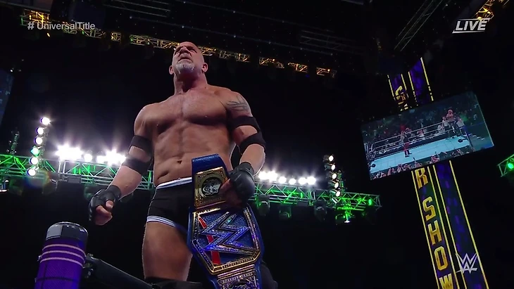 Чемпион Вселенной увидел момент и начал проводить 2-ой Mandible Сlaw - Изверг оказался близок к победе, если бы не хэдбатт и пара ударов с колена. Дело повернулось в пользу члена Зала Славы WWE, ибо это оказалось серьёзной заявкой. И тут Голдберг вышел на крайне неплотный JackHammer (отчасти даже заботченный, но как по мне - это не точно из-за физических показателей Билла) и свершилось немыслимое: Изверг буквально БЫЛ УДЕРЖАН до 3 после финишера Голдберга!!! Это было реальным ШОК-МОМЕНТОМ всего шоу - не галлюцинацией. ИЗВЕРГ ПАЛ ОТ РУК ЛЕГЕНДЫ WCW!!!