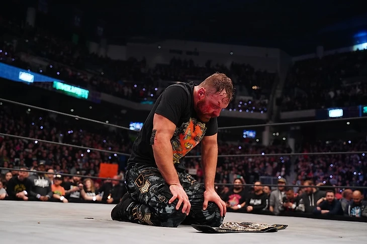 Моксли вышел все еще с повязкой на глазу. Перед тем, как заиграла музыкальная тема чемпиона, ее первый куплет спел хор. Очень необычно, прикольно, и опять хорошая работа звукарей, ибо хор было отлично слышно. Сантана и Ортиз сопровождали Криса. Сразу после гонга рестлеры стали обмениваться ударами, и в этом стартовом размене преуспел Моксли, отправив Джерико за пределы ринга клоузлайном. Плавно действо перетекло в зрительский зал, и Крис перехватил инициативу, после чего поигрался с камерой, как он это любит, и бросил ограждение на спину оппонента. Потихоньку контроль оказался в руках чемпиона, Джон попробовал отбиться, покусав Криса немного, но «Le Champion» в ответ атаковал глаз и провел пауэрбомбу на стол таймкипера, который развалился. Ну а мы заметили, что у претендента идет кровь откуда-то из поврежденного глаза. С этого момента начался достаточно длительный период доминирование Джерико, в ходе которого он даже в гонг позвонил и объявил себя победителем, но потом вернуся в издевательствам нам визави. Если «Мокса» мучил не Крис, значит его мучили Сантана и Ортиз, пока Крис отвлекал судью. Все это закончилось, когда исполнители оказались на тАкадемия футболаретьем канате, и Джон смог наконец сбросить чемпиона оттуда, проведя элбоу дроп. Клоузлайн прошел, несколько ударов в углу, и Джерико попытался реверсировать миссл дропкик в «стены», однако Моксли вышел на болевой на ногу, так что Крису пришлось спасаться у канатов и покидать четырехугольник. Претендент же достал его суисайд дайвом, атаковал у канатов по пути обратно и провел Regal Knee до 2. Сантана попытался вмешаться, но получил от Джона, рефери отвлеклась, и Ортиз ударил Моксли связкой мячей для бейсбола так, что тот упал идеально под Lionsault. Удержание, и только до 2. Джерико добавил клоузлайн, попытался провести Codebreaker, однако Джон реверсировал и провел Walls of Jericho. Чемпион стал тянуться к канатам, претендент попытался пресечь это дело, и на рампе появился Хэйгер. Моксли усмирил одним ударом и его, но развернувшись получил Codebreaker из неоткуда до 2. «Стены» прошли от чемпиона, и с трудом «Мокс» дотянулся до канатов. Крис решил поговорить с рефери, позволив противнику прийти в себя и провести сайд суплекс и лэриэт, как вдруг у канатов ему досталось от Джейка Хэйгера… правда рефери все видела, и не стала никого дисквалифицировать, а просто удалила представителей Inner Circle с рингсайда. Пока она их провожала, в ринг залетел Сэмми Гевара и огрел Моксли титулом, но удержание только до 2. Джерико провел несколько ударов, Джон попытался ответить, и они устроили размен, в ходе которого Крис атаковал единственный здоровый глаз соперника. Решив, что «Мокс» теперь слеп, он стал издеваться над ним, провел knee drop с третьего каната и приготовился к Judas Effect, но съел Paradigm Shift из неоткуда. Моксли снял повязку с глаза, аккуратно вылил оставшуюся кровь, но оказалось, что глаз абсолютно здоров, да и кровь ненастоящая. Еще одна Paradigm Shift, и у нас новый чемпион AEW! В промо после матча Джон поблагодарил всех фанатов AEW, и особенно своих фанатов за поддержку, заявив, что этот титул принадлежит им. Он отметил, что этот год выдался чертовски крутым для него, и год назад AEW обещали вернуть профессиональный рестлинг людям, и они это сделали. Он готов к вызовам и будет драться со всеми желающими но не сейчас. Сейчас время выпить немно
