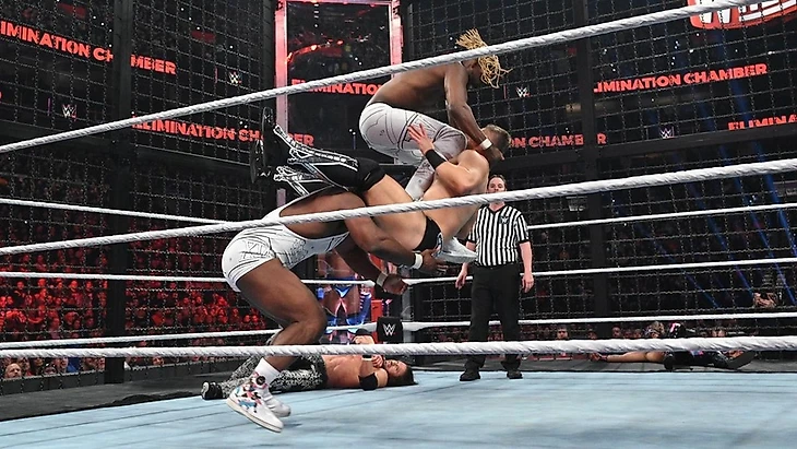 Мы увидели хороший Elimination Chamber матч. Да, у него были местами небольшие проблемы с темпом, да и интенсивность в таком матче могла бы быть повыше, но в целом, команды справились на отлично. Было на что посмотреть и до спота с Отисом, но после этого спота бой набрал отличный ход, а концовка была и вовсе более чем веселой. Не лучший бой по подобным правилам, но вполне себе достойный. Моррисон с Мизом защитились, что напрашивалось, каждая команда получила свой шанс проявить себя, как и положено. Посмотрим, что ждет командные титулы SmackDown по дороге к WrestleMania, и от кого они теперь будут защищаться, одолев чуть ли не все топовые команды в этом матче.