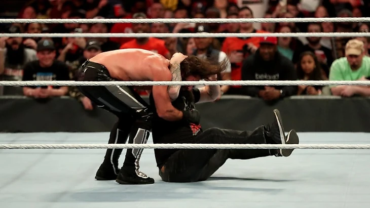 На бумаге это был неплохой матч, и в целом он вышел не полностью провальным. Хочется, во-первых, похвалить рестлеров за некоторые споты и то, как они к ним подготавливались, Блэку отдельный респект за селлинг травмированной ноги. Но во-первых, бой длился сильно дольше, чем должен был. Во-вторых, ставить матч на 20 с лишним минут после более чем получасового EC-матча — это плохой выбор. Споты симпатичные были, нам попытались рассказать историю про про No DQ, но в целом, тут были определенные, не всегда оправданные проседания по темпу. Плюс, мы увидели определенные проблемы с логикой. Почему Блэк, который так пострадал от О.С., не начинает рвать и метать сразу после гонга, а спокойно возится с соперником в чейн-рестлинге 2 первые минуты? Почему такая беспринципная группировка как О.С. в матче без дисквалификаций имели возможность уничтожить Алистера втроем за минуту, но Карл и Люк вообще в бой не вмешивались до последнего? В одной из наших конференций кто-то написал «потому что Стайлз хотел показать, что он может сам, он же в промо перед матчем рассказал какой он крутой». Я боюсь, что это не вяжется с деяниями нынешнего Стайлза. А его рассказы о том, какой он крутой, и любой матч против него нечестный по определению — не более, чем хильский хасл, не имеющий отношения к тому, что он делает в ринге. Появление Гробовщика… Окей, это было читаемо и предсказуемо (я промолчу, да, про то что он просто за шейку подержал Люка и Карла, и те откатились аж чуть ли не на рампу от таких «мучений»), но теперь командник O.C. против Блэка и Гробовщика на «Мании» смотрится более логично, чем одиночный матч Стайлза и Тэйкера. Раз уж Алистера в это дело впутали. Но мы-то с вами знаем, что будет бой 1-на-1.