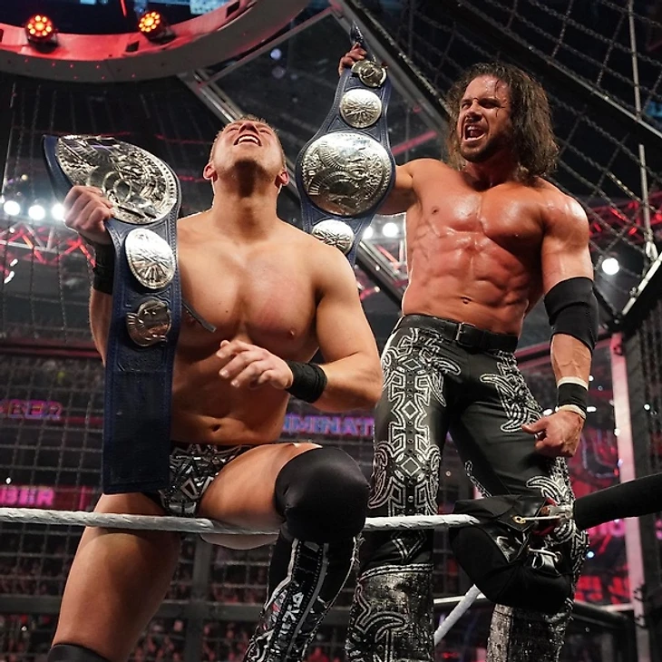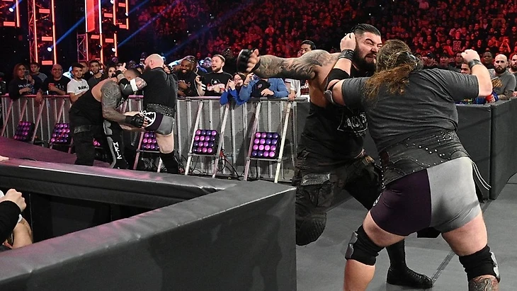 Перед выходом на бой чемпионы толкнули небольшое промо о том, как они заряжены на борьбу и want the smoke. Кстати, и тут чемпионы выходили раньше претендентов. Во время выхода Роллинса и Мерфи я понял, что если бы у Сета была борода по длинней издалека он был бы чем-то похож на Джея Уайта. АоР и Мерфи еще до матча осмотрели все вокруг ринга на наличие Кевина Оуэнса где-то рядом. Докинс и Роллинс начали бой. Фанаты встали на сторону чемионов. Сет не торопился разгонять матч, а потом и вовсе передал право ведения боя Бадди. Классическая back and forth работа от рестлеров, и Анджело срубил оппонента шоулдер тэклом, передав право ведения боя Форду. Какое-то время Street Profits часто меняли друг друга в ринге, атакуя руку австралийца, но в итоге тот отвесил Монтезу панч и вернул в ринг Роллинса. Чемпион же достаточно быстро отбился, провел армдрэг, но «Мессия» провел ему панч, вернул в матч Бадди… и тот попал под армдрэг, затем под еще один. Тэг Доукинсу, командная работа. Сет попытался помешать — и тоже получил командный оверхэд тосс. Затем еще и двойной дропкик претендентам достался. Австралийца вернули в ринг, но он покинул его пределы, чтобы передохнуть, а по пути обратно передал «слепой» тэг Сету, и тот атаковал Анджело чоп блоком. Какое-то время претенденты контролировали ход матча, но недолго, Докинс отправил Бадди за пределы ринга и передал право ведения боя Форду. Тот стал уничтожать Мерфи, была парочка немного корявых моментов, и DDT в исполнении чемпиона. Отправив Роллинса за пределы ринга, он добавил австралийцу стэндинг мунсолт, однако до 2. Мерфи укатился за пределы ринга, и оба претендента получили дайв. Бадди был возвращен в четырехугольник, но Сет отвлек рефери, позволив АоР атаковать Форда. И тут заиграла музыкальная тема Viking Raiders: Эрик и Айвар пришли по душу Эйкэма и Резара. В танго броулинга два тандема ушли за кулисы, а шансы были уравнены.