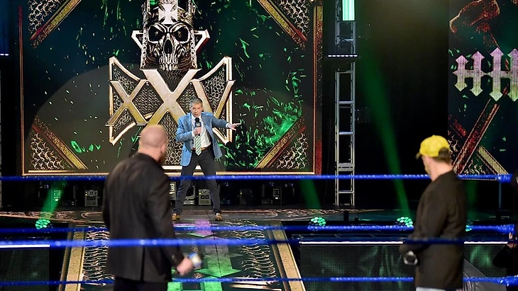 Босс всея WWE с подачи Майклза зарядил свой спич, предварительно дав понять, что не обнимет своего зятя из-за соблюдения правил дистанцирования. Винс поведал о некоторых забавных моментах и фактах, связанных с Игроком - всё это вызвало в Поле приступ дикого смеха. А дальше пошли не менее весёлые, но признания в любви между этими чуваками, даже Шон Майклз это сделал, причём Винс на очень ударной в своей фирменной манере ноте завершил своё поздравление Трипл Эйча. И тут начались стрекотание сверчков - причём на вопрос Игрока о этом деле, Шон ответил "Это звук истории - истории твоей карьеры, дружище". На чём шоу и вышло из эфира.