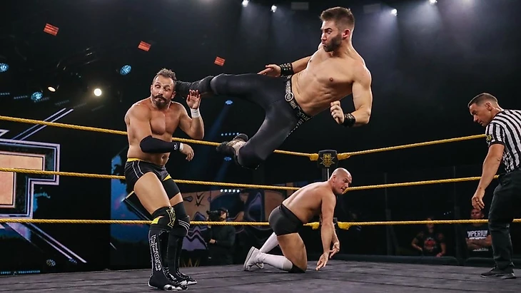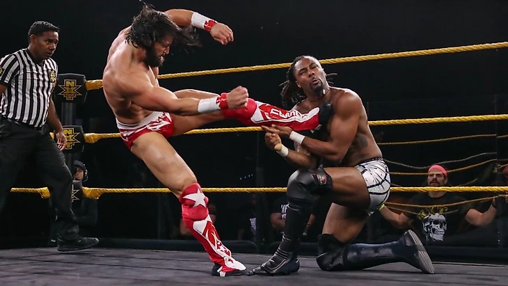 После боя появились командные чемпионы NXT, чтобы заценить своих новых оппонентов. Однако внезапно вернулись и Мальком Бивенс с Indus Sher, что сулит интересный расклад.