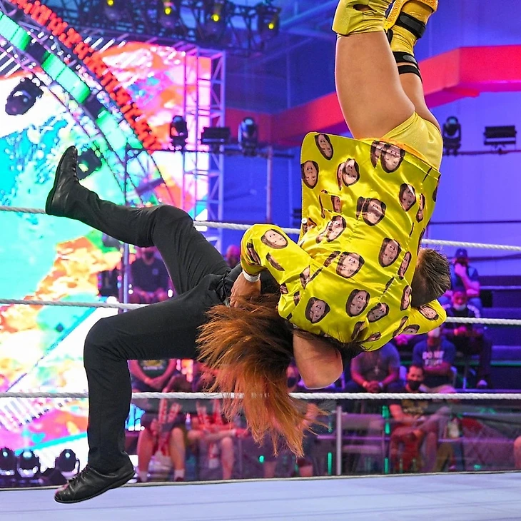 Это был весьма достойный командный матч с высоким темпом, неплохим командным взаимодействием, подводкой к будущему противостоянию, в целом логичным построением и элиминирований, и темпа элиминаций, так как происходило всё довольно быстро, что добавляло динамики и не утомляло. Единственный возможный минус, это сами правила матча, так как на ринге находилось только два человека, а не по одному от команды. Но по мне в этом матче это было даже к лучшему — не было какой-то сумбурности, а также была пара моментов, завязанных именно на взаимодействии с такой системой тагов.