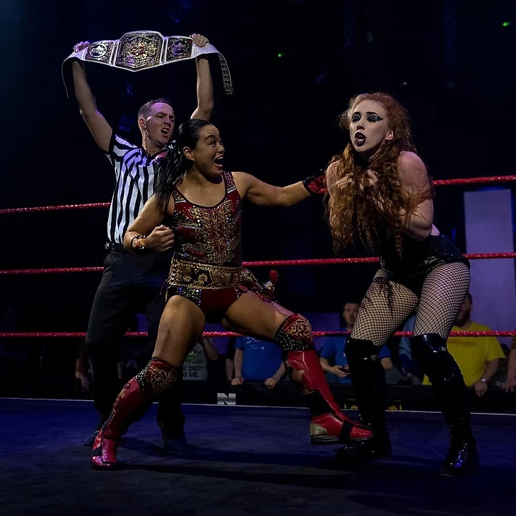 ... Мейко, одна из лучших женских рестлерш, старающаяся принести хоть немного рестлинга в эту дичь и явственно думающая "I'm wasting my life here" ...