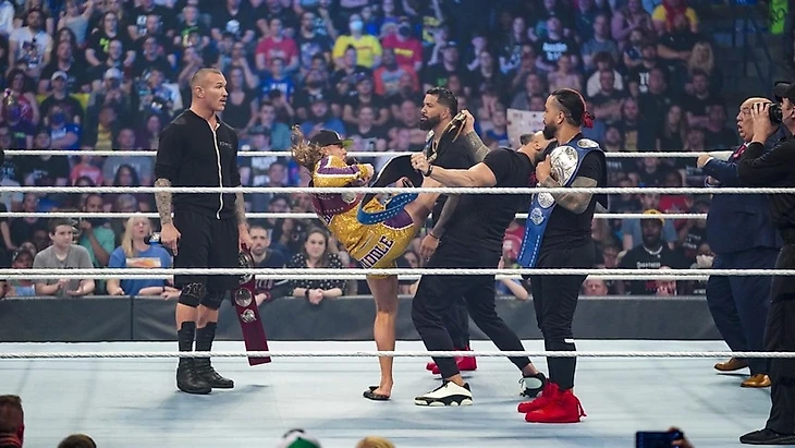 Матч образовался посредством стартового сегмента: шоу открыли командные чемпионы RAW WWE Рэнди Ортон и Риддл. И начали они не просто с обычного приветствия, но и с негодования. Причём не со своего поражения от рук The Bloodline, а с признания правоты в одном вопросе — что братья Усо не имеют своих яиц, ибо любые решения и концовки того или иного события остаются в руках одного человека, Романа Рейнса. Тут также свои 5 копеек встал и сам Риддл, причём не изменяя своей манере, выдал довольно серьёзную вещь — мол, зачем Усо постоянно как-то и перед кем-то красоваться и выпендриваться, если последнее слово останется за Романом Рейнсом, как это и случилось с тем же Риддлом в мэйн-ивенте прошедшего шоу WrestleMania Backlash. Ортон полностью согласился с мнением своего друга и кратко дал понять главное: RK-Bro больше не намерены играть к прятки и догонялки со своими оппонентами. И они требует на выход в ринг самого Романа Рейнса для разговора.