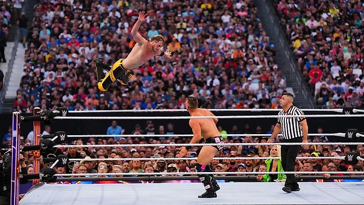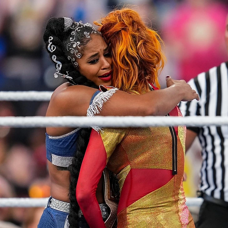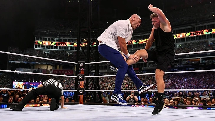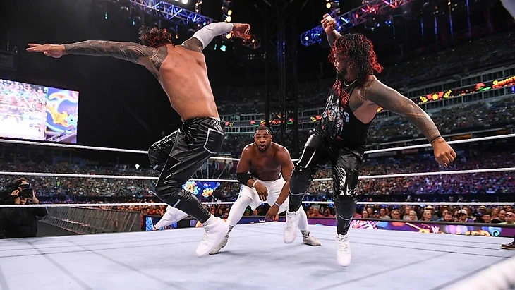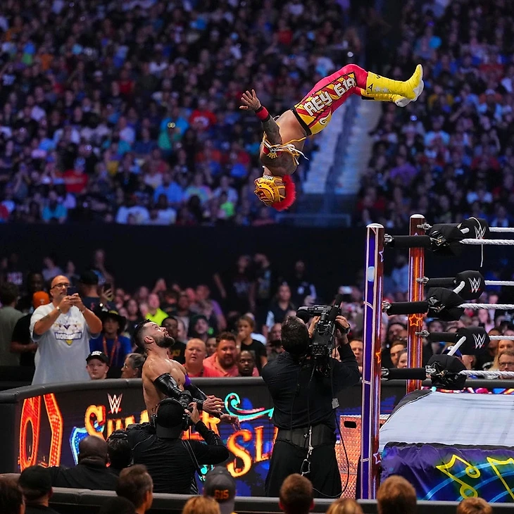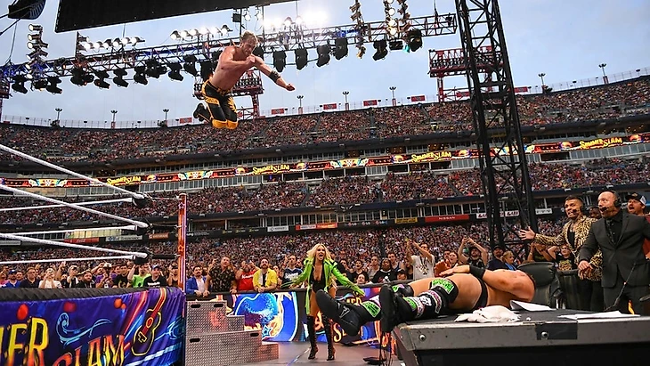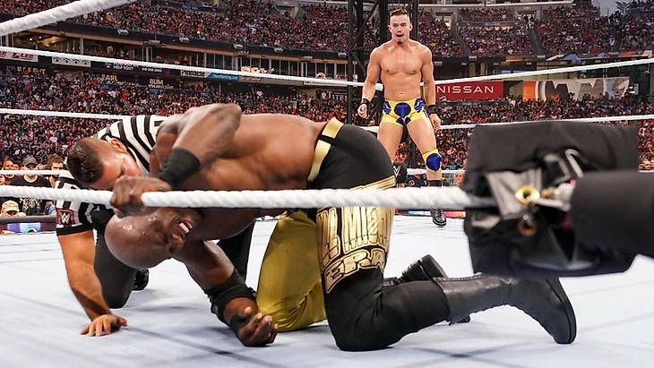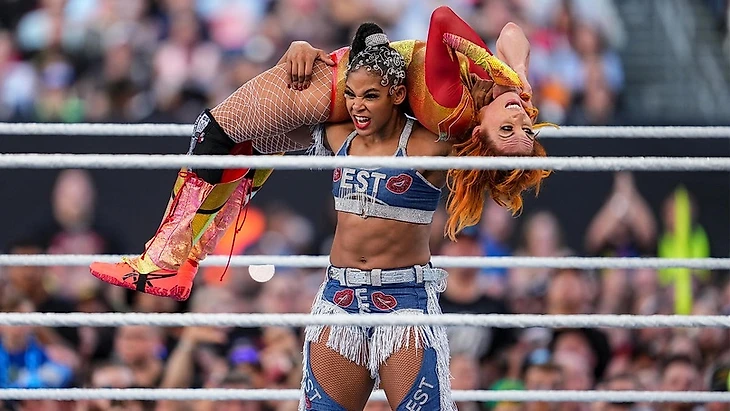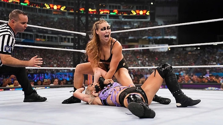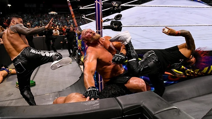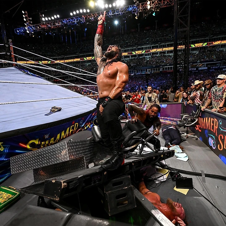 Доброго времени суток, Ассалому Алейкум, дорогие друзья! На связи Юлий Марков, и, совершенно верно, прошлой ночью прошло главное шоу лета — SummerSlam 2022. На бумаге, имхо, шоу выглядел противоречиво. Однако смена руководства вселяет оптимизм, несколько потенциально прекрасных матчей в карде есть, да и отзывы я почитал, как обычно, и, внезапно, шоу очень даже хвалят. Что ж, давайте выясним за что хвалят, а также выясним, чем же завершился «последний-припоследний» матч Брока Леснара и Романа Рейнса. 1 из 2 Мы в Нэшвилле, штат Теннесси, на Nissan Stadium, где, если верить WWE, собралось 48 449 фанатов. Честь открывать шоу выпала девушкам. Начался бой предсказуемо с поиска инициативы, в котором главная задача претендентки состояла в том, чтобы не допустить ошибок. Тем не менее, ошибку она допустила, поддавшись эмоциям и попав под шоулдер тэкл, однако Бекки быстро ответила на него броском и атакой руки, над которой тут же принялась работать. От одного из маневров Бьянка ушла с помощью хэндспринга, провела дропкик и фэйсбастер. Стэндинг мунсолт до 2 последовал, и Линч укатилась за пределы ринга. Белэйр отправилась за ней и попыталась провести вариацию KoD в зону тайм-кипера, но претендентка приземлилась на ноги, провела атаку все той же руки и добавила легдроп на баррикаду. Удержание в четырехугольнике до 2, и, претерпев еще пару незамысловатых атак, Бьянка реверсировала попытку Manhandle Slam в суплекс, который Линч в свою очередь перевела в сворачивание до 2. La Mistica у Бекки не прошла, но она нашла возможность для вариации Final Cut до 2. В общем, ирландка вновь захватила контроль. «EST» пыталась отбиться, но угодила в болевой на руку, а потом и в удержание до 2. Дропкиком Линч отправила соперницу на апрон, нанесла еще несколько ударов и приготовилась к легдропу, который Белэйр каким-то чудом перевела в бросок. После отрезка борьбы на апроне, Бекки отправила соперницу на рингсайд, но та пресекла полет, проведя вариацию фэйсбастера на апрон. Серия реверсов привела к тому, что Линч хотела потянуть оппонентку за косу, чтоб направить в стойку ринга, но Бьянка потянула Линч на себя, так что именно голова Бекки встретилась со стойкой ринга. Суплекс на рингсайде и хэндспринг мунсолт по возвращении в ринг последовали, но только до 2. Очередная серия реверсов привела к спрингборд кроссбади от Линч, который Бьянка чуть не перевела в пресс слэм, однако Бекки ушла и провела флип станнер со второго каната (что-то похожее на Esperanza Тетсуи Найто, но только станнер, а не реверс DDT). Тоже только до 2. Пошел обмен ударами, который перетек в реверсы, и Белэйр провела еще один фэйсбастер, но KoD Бекки избежала, реверсировав его в Dis-Arm-Her. «EST» не вылезая из болевого, выбралась за пределы ринга, вытащила вместе с собой Линч на плечах и провела KoD на рингсайд! Чемпионка вернулась в ринг, поняв, что не сможет вернуть туда соперницу, надеялась выиграть по отсчету, но Линч успела на счет 9. Второй KoD Линч получать отказалась, за что стала жертвой спайнбастера. Восхождение на третий канат противницы Бекки прервала, и девушки стали обмениваться ударами на углу. В итоге, претендентка за косу стащила Белэйр на канвас, зарядила Manhandle Slam, но Белэйр вырвалась! Линч нанесла несколько удар, на это дело Белэйр ответила парой близких сворачиваний, и Бекки направила ее на второй канат, попыталась провести оттуда Manhandle Slam, однако Бьянка