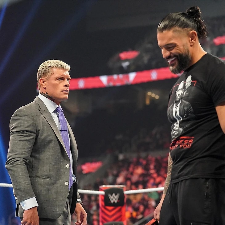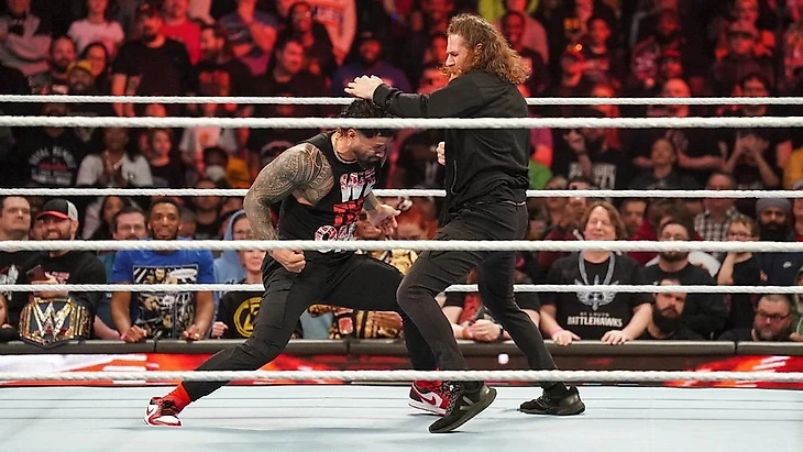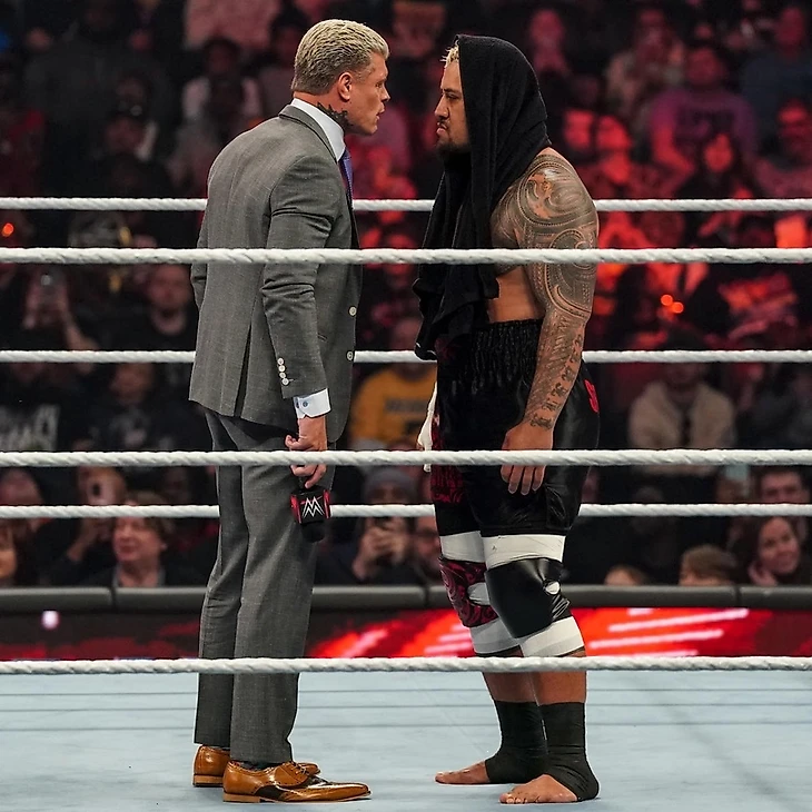 Всем вновь большой и пламенный привет, дорогие друзья и прочие обитатели Wrestling Home. К Вам опять подъехал ваш покорный слуга и один из бойцов главной и неостановимой обзорческой когорты паблика — Артур Аллахвердян. До главного шоу года в Голливуде остаётся меньше 2 недель и всё уже идёт к ключевой развязке билд-апа. Естественно все основные сюжеты могут уже сегодня получить свои финальные точки развития, чтоб через неделю их закрепить. У одних сюжетов будет всё именно так, а у остальных — им предстоить выйти на финальный отрезок, чтоб через неделю подвести свои итоги. На сегодня красный бренд предлагал следующее: очередное послание от Остина Тиори к Джону Сине матчем с Монтезом Фордом, командная кооперация между бывшими подругами и нынешними соперницами по титульному матчу, новый ход Логана Пола против Сета Роллинса через дебют своего подкаста на ринге WWE и второй face-to-face Романа Рейнса с Коди Роудсом + серия внезапных по классике жанра матчей во время выпуска. Что ж получилось из всего этого действия — разберёмся, ПОГНАЛИ!!! P.S. - прошу прощения за позднюю публикацию, так как возникло ЧП у одного из моих старших коллег и пришлось переносить публикацию прямо на свой день рождения. – Выпуск открылся выходом на ринг Кевина Оуэнса и Сэми Зейна. Во время выхода нам напомнили о событиях прошлого выпуска Смэка о том, что несмотря на отрицательное завершение открывающего сегмента между ними и Коди Роудсом, в концовке выпуска КО вернулся к Зейну и спас его от избиения со стороны братьев Усо. И восстановил союз с Сэми, показав что Сэми был прав. Сейчас же после парочки любезностей между собой под чанты зрителей Сент-Луиса, Зейн сказал что он не должен был идти на примирение с Кевином как к деловой сделке, ибо это так не работает и никогда не работало между ними за последние 20 лет. Между ними бывало всякое и многие это знают, видели, чувствовали. Но всё-таки несмотря ни на что, они помогали друг другу, как угодно и любыми способами реализации. Кевин в ответ говорил, что он всегда был поклонником того, что делает Зейн. Это то, что сделало Сэми лучшим среди всех здесь и сейчас, Оуэнс это знает и понимает о чём говорит. Так что для него было кошмаром видеть его в The Bloodline, учитывая что даже там он умудрился доказать почему он лучший. Многие видели и сам Кевин, что КО не мог смириться со сделанным осознанно выбором в прошлом году Сэми в пользу The Bloodline. Впрочем по прошествию времени и событий, Кевин готов признать правоту Зейна в том, что если и уничтожать The Bloodline – то только вместе и сейчас. Зейн отвечает, что они оба знают где их место сейчас, оба посмотрели на вывеску WrestleMania и тут к ним начали выходить братья Усо с титулами командных чемпионов обоих брендов. Усо раскритиковали эти милые беседы канадцев между собой, особенно Джей, указывая что оба готовы друг на друга напасть по их старой доброй традиции. Сэми парировал тем, что главная мечта Джея — это наброситься с кулаками на Романа Рейнса, что Джей пытался отрицать и Джимми тоже. Также Джимми продолжил, что они оба не получат того что желают — матча с ними за титулы неоспоримых командных чемпионов WWE. КО дал понять что они верно мыслят, ибо этого матча и развязку этой истории абсолютно все вокруг ниих желают увидеть на главном шоу года: братья Усо против Кевина и его брата Сэми за неоспоримые командные чемпио
