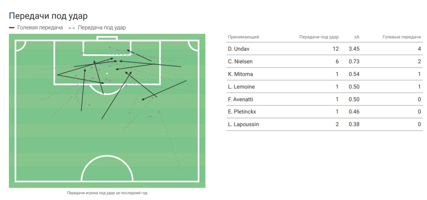 2) Открывания на границе офсайда. Важное качество для нападающего его формата. Убегает за спины защитникам при малейшем просчёте, Николая Рассказова ставить для опеки Данте нельзя.