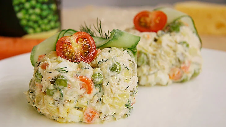 Средняя стоимость «Оливье» и «Мимозы» по этим рецептам составит 250-300 рублей – если положить все ингредиенты в указанном объеме, получится 6-8 порций – недорогих и полезных.