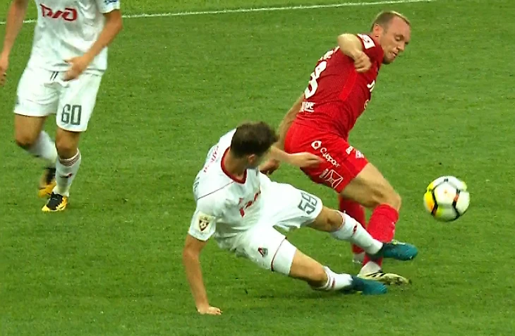 Смотрим видео на 53-й минуте. Еськов стоит в 5 метрах, ему никто не загораживвает обзор - просто выполни судейские обязанности и свистни нарушение с желтой карточкой Миранчуку, ведь ранее ты жесткие рамки установил по судейству! Она была бы первой, и тогда бы Миранчук не играл безрассудно дальше. "Я так думаю". Но Еськов продолжает атаку "Локомотива", несмотря на протесты и апелляции Глушакова. Это ли не странно? Смотрите сами с двух ракурсов. Вот такой дуализм в одном матче - спартаковцы нарушают, а соперники нет. Не много ли для отличной оценки Будогосского?
