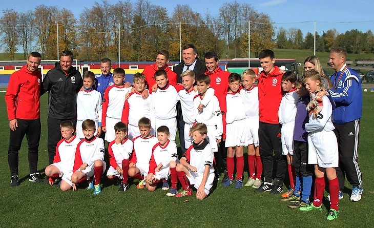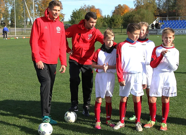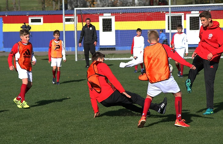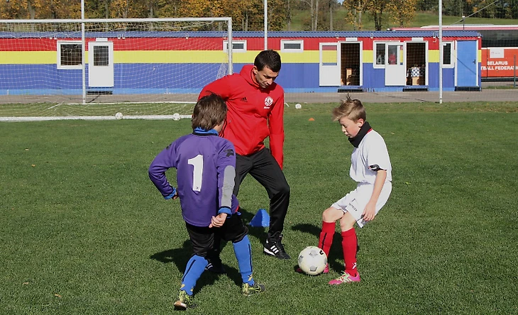 Футбольная сборная Беларуси не перестает преподносить сюрпризы болельщикам. Очередной подарок от команды Александра Хацкевича перепал самым юным из них, когда утром вторника капитан Александр Мартынович вместе со Станиславом Драгуном и тезками Сергеями – Корниленко и Кисляком наведались на стадион «Озерный». Под руководством главного тренера спортсмены провели импровизированную тренировку с детишками 2005 года рождения, постигающими основы игры в смолевичской ДЮСШ. О том, как это было, подробно расскажет сюжет АБФФ-ТВ.