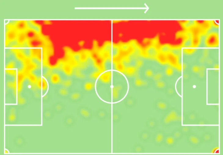 На последней фотографии мы видим к чему привел провал Классена в обороне. Нападающий совершит прострел, после которого будет забит гол. Как я сказал ранее- Классен плохо играет в позиционной обороне. Поэтому не стоит переоценивать голые цифры, которые я привел в самом начале