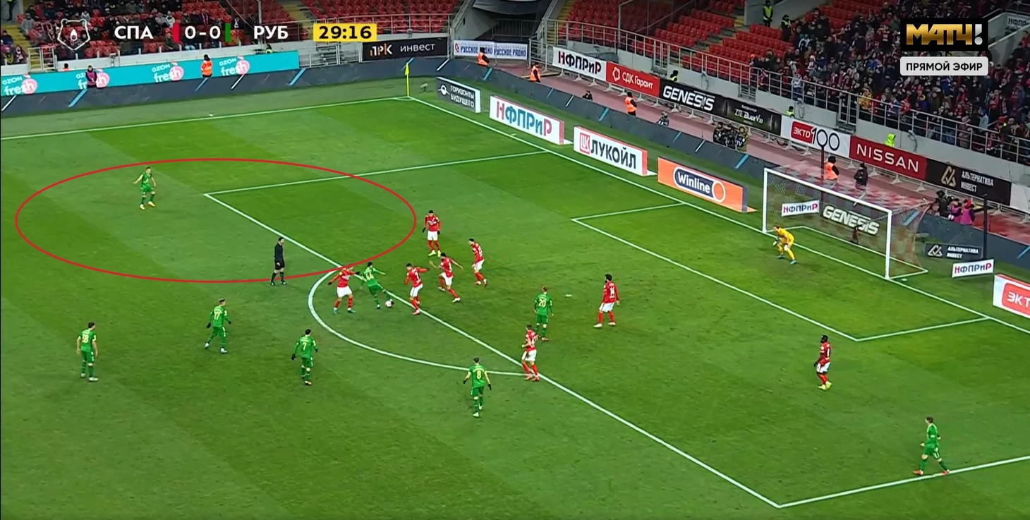 В этом матче Рубин был готов к такому роду передач и они не принесли особых плодов. Особенно во втором тайме, когда Мозеса не было на поле и левый фланг закрывал Джикия