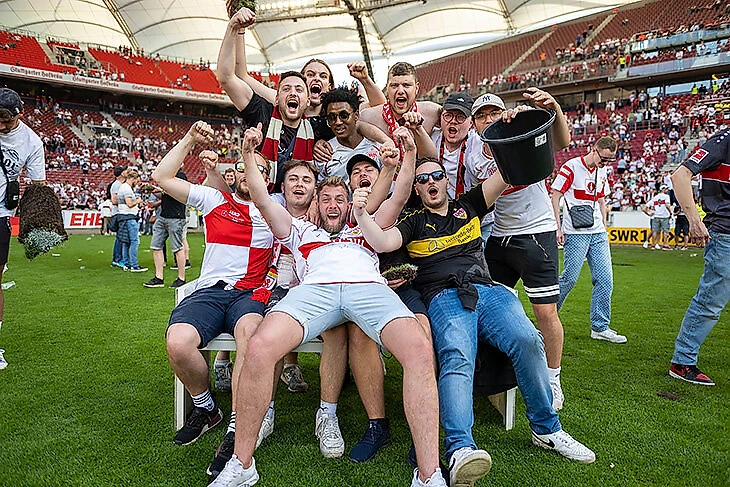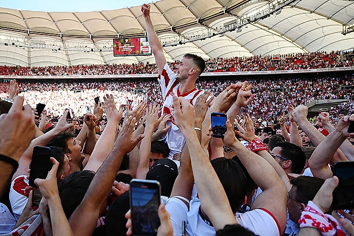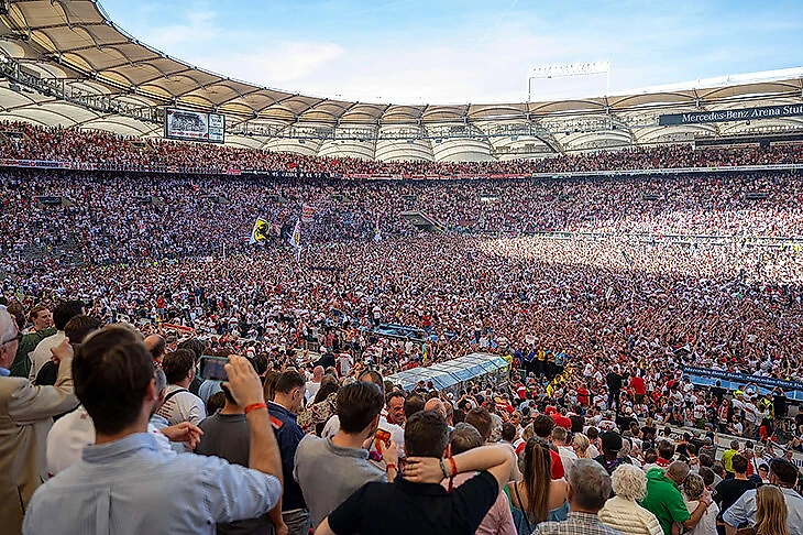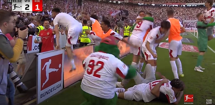 И вот на 92 минуте, после подачи углового, Штутгарт выходит вперед. На стадионе начинает твориться настоящее безумие. Все запасные и тренера выбегают на поле праздновать "золотой гол":