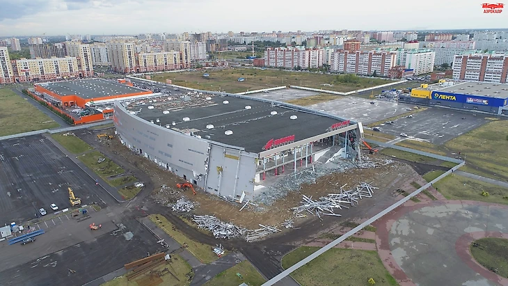 А уже вечером передняя часть арены была обрушена.
