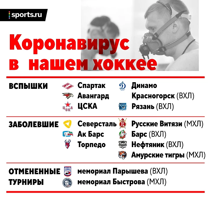 На карантин ушел «Спартак»: сначала стало известно о пневмонии у Андрея Зубарева, потом вспышка перекинулась на еще десяток игроков и сотрудников. Следующим стал «Авангард» – Сергей Шумаков стал первым игроком КХЛ, коронавирус у которого был публично подтвержден, а потом болезнь перекинулась еще на десяток игроков. «Авангард» уже отказался от участия в предсезонном турнире в Сочи.