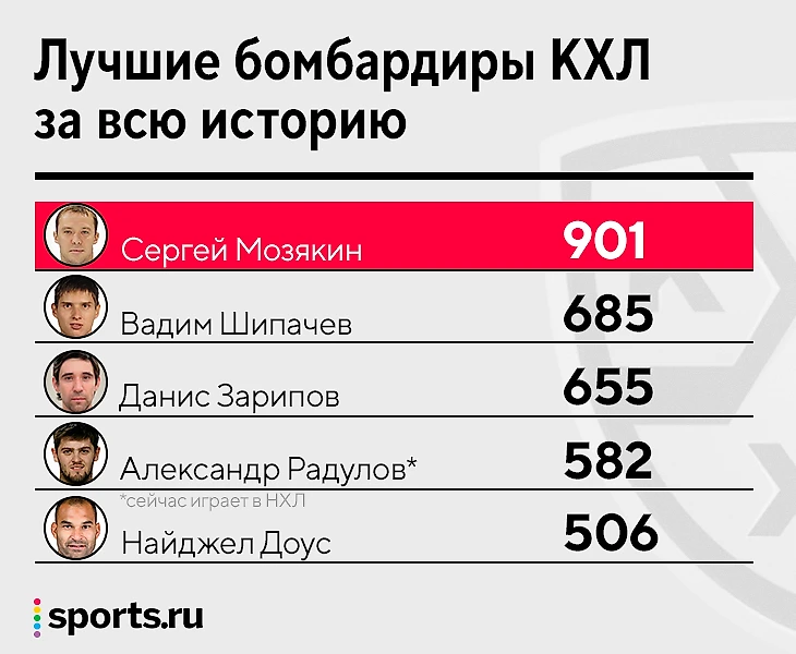 Мозякин – легенда КХЛ. Набрал 900 очков, рядом нет вообще никого