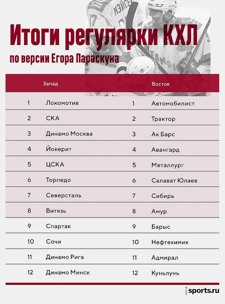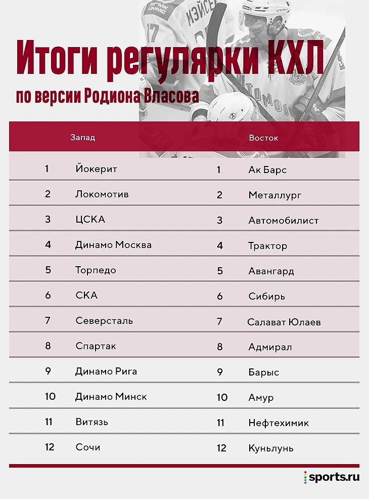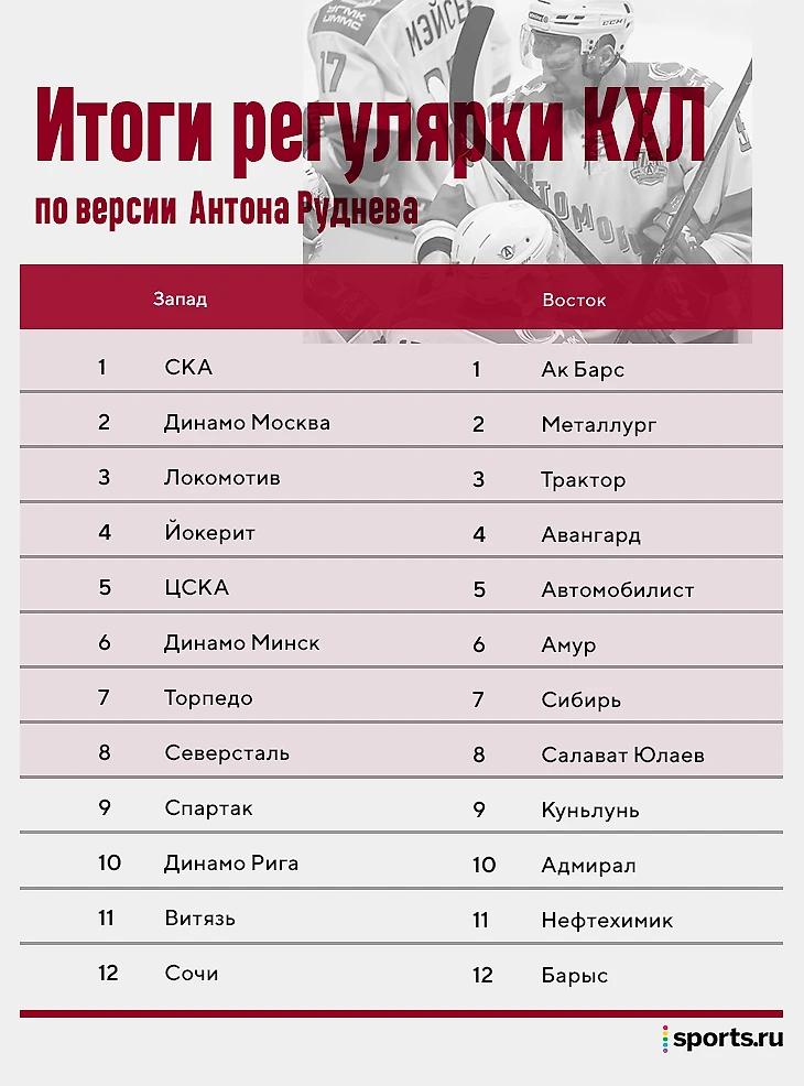 «Трактор» после поразительно беззубого плей-офф как-то не дает верить в него на все сто процентов, да и скамейка в Челябинске коротковата. Самая загадочная команда – «Сибирь»: там есть потенциал уйти как на третье место, так и на девятое – правда, второму в Новосибирске уже вообще не удивятся.