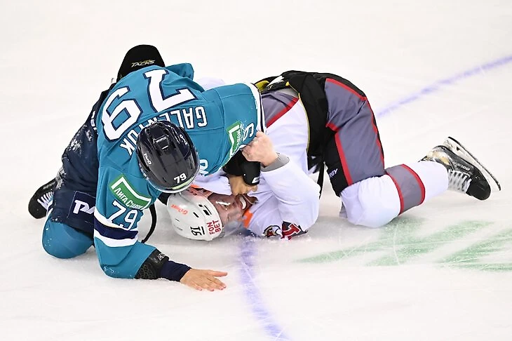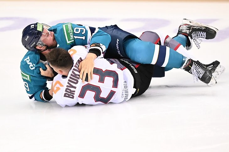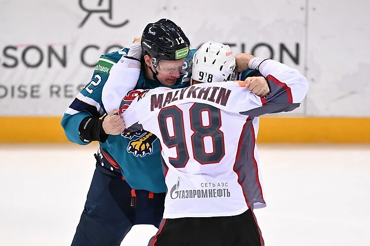• Артем Иванюженков (первым идет игрок команды-хозяев) сцепился с Федором Малыхиным – ничья;