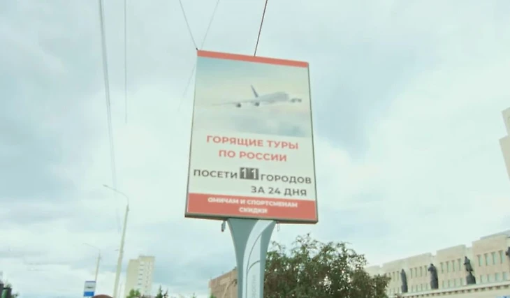 Дальше Найт и Сведберг идут мимо плаката «Горящие туры по России. Посети 11 городов за 24 дня. Омичам и спортсменам скидки» – отсылка на напряженный календарь «Авангарда» в сентябре. «G-Drive Арена» примет первый матч КХЛ только 1 октября – до того «ястребы» будут играть в гостях.