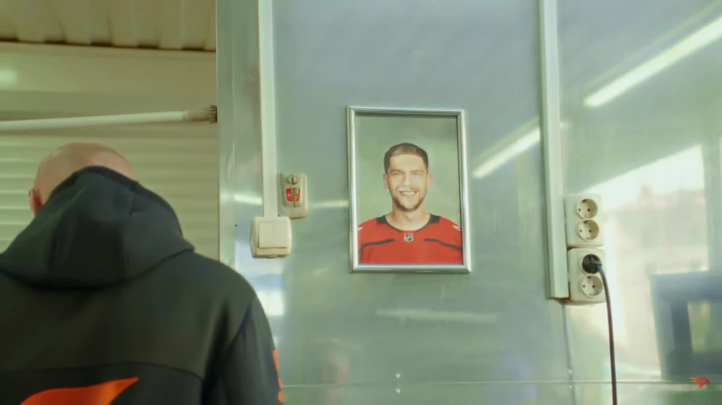 В самом видео не упоминается фраза, зато здесь полно своих хоккейных мемов, отсылок и пасхалок. Например, Виктор Сведберг практикуется в легендарной беляшной Омска – а на стене там висит портрет Евгения Кузнецова, который запачкали мукой.