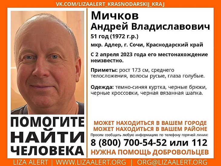 • Как сообщал «Матч ТВ», Мичков-старший пропал вечером воскресенья, 2 апреля: в районе 9 вечера сказал, что сейчас вернется, и ушел из квартиры, которую снимает вместе с родными.