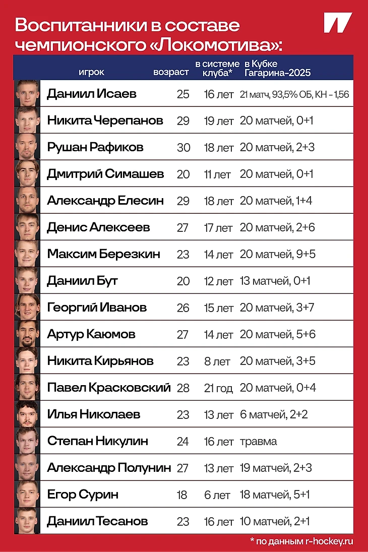 Зато красота в другом – количестве воспитанников, которые выиграли этот трофей. 17 игроков могут считать себя ярославскими кровинушками. Да, не все из них родились в этом городе, но все оказались в системе в довольно раннем возрасте – прошли всю школу, МХЛ (некоторые даже МХЛ Б и НМХЛ), поездили в ВХЛ и по арендам (не учитывалось при подсчете лет) и доросли до главной команды.