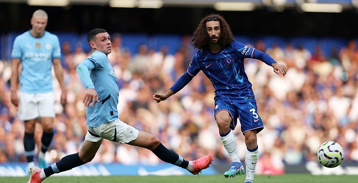 В этой игре можно увидеть куда будет идти Сити, Гаражане вышли на поле в схеме 4-3-3, где 4 игрока линии защиты, единственным опорником-Ковачичем, двумя атакующими Дэ Брейне и Силвой должны были строить игру для фланговых атакующих, отлично подготовленные вингеры тому яркая иллюстрация, Кукурелье и Густо пришлось не сладко так как очень много атак было совершенно именно через фланги, быстрые Доку и Савио не давали покоя защите синих, именно от них исходила большая опасность. Но все равно по факту Сити играл по схеме 3-2-4-1, в которой молодой Луис предвосхитил всех своей игрой в опорной зоне при продвижении и на фланге при защите, этого перемещения стало достаточно что бы Челси был переигран в центре поля и часто терял мяч при выходах из обороны.